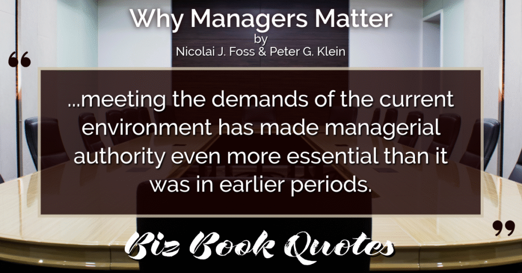 Quotes Quote: …meeting the demands of the current environment has made managerial authority even more essential than it was in earlier periods.