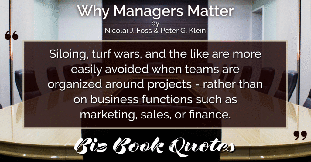 Quotes Quote: Siloing, turf wars, and the like are more easily avoided when teams are organized around projects – rather than on business functions such as marketing, sales, or finance.