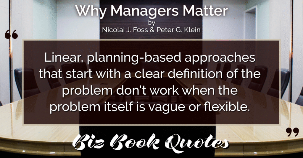 Quotes Quote: Linear, planning-based approaches that start with a clear definition of the problem don’t work when the problem itself is vague or flexible.
