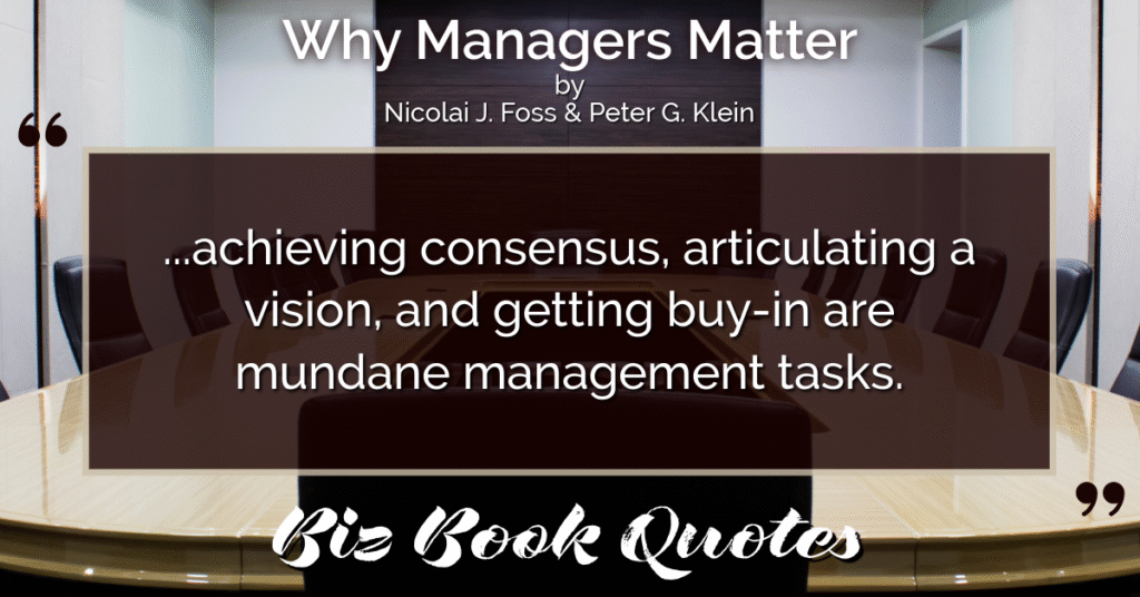 Quotes Quote: …achieving consensus, articulating a vision, and getting buy-in are mundane management tasks.