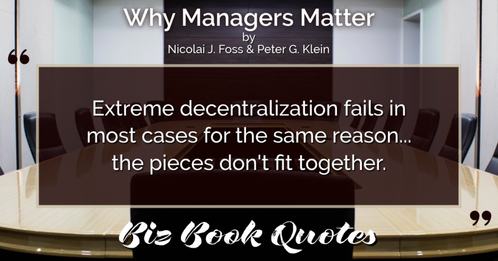 Quotes Quote: Extreme decentralization fails in most cases for the same reason… the pieces don’t fit together.