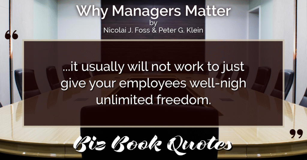…it usually will not work to just give your employees well-nigh unlimited freedom.
