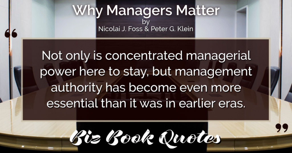 Quotes Quote: Not only is concentrated managerial power here to stay, but management authority has become even more essential than it was in earlier eras.