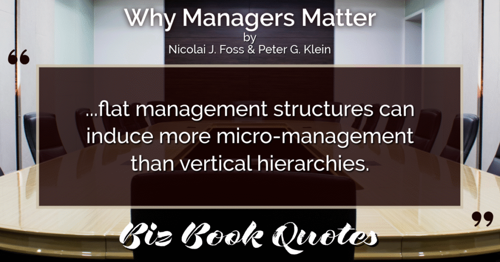 Quotes Quote: …flat management structures can induce more micro-management than vertical hierarchies.