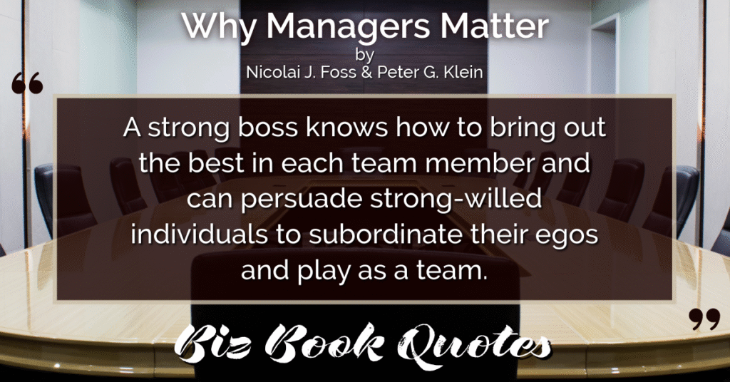 Quotes Quote: A strong boss knows how to bring out the best in each team member and can persuade strong-willed individuals to subordinate their egos and play as a team.