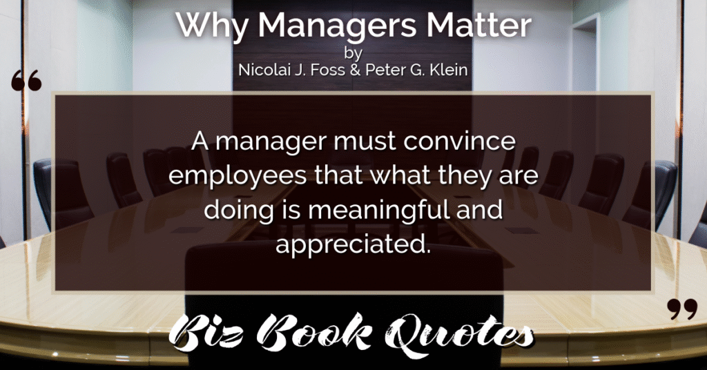 Quotes Quote: A manager must convince employees that what they are doing is meaningful and appreciated.