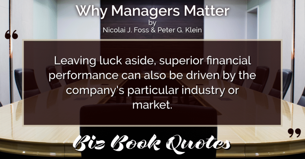 Quotes Quote: Leaving luck aside, superior financial performance can also be driven by the company’s particular industry or market.