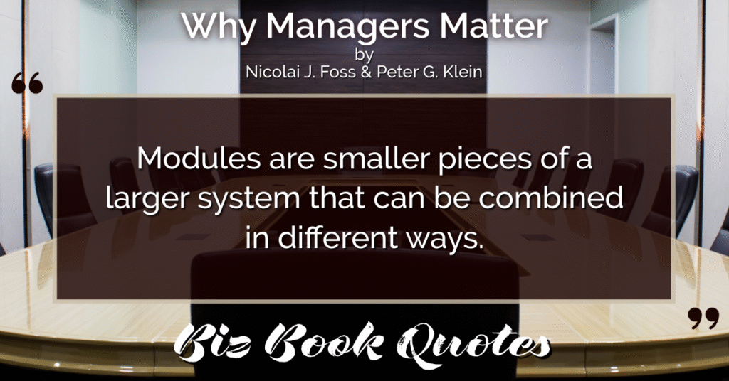 Modules are smaller pieces of a larger system that can be combined in different ways.