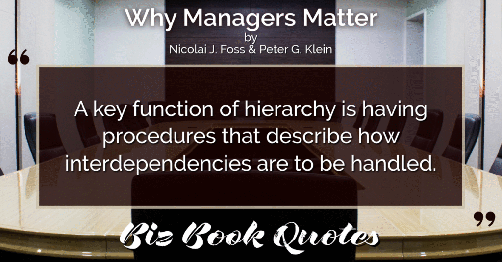 Quotes Quote: A key function of hierarchy is having procedures that describe how interdependencies are to be handled.