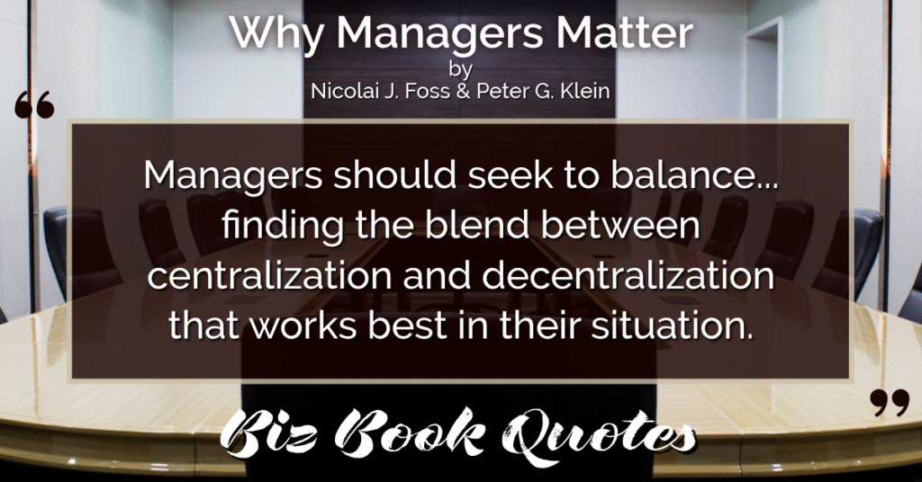 Quotes Quote: Managers should seek to balance… finding the blend between centralization and decentralization that works best in their situation.