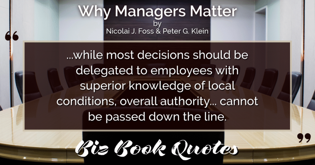 Quotes Quote: …while most decisions should be delegated to employees with superior knowledge of local conditions, overall authority… cannot be passed down the line.