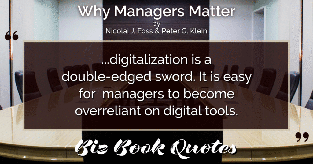 Quotes Quote: …digitalization is a double-edged sword. It is easy for managers to become overreliant on digital tools.