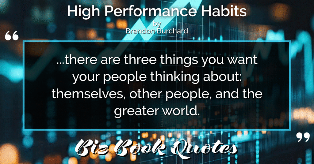 Quotes Quote: …there are three things you want your people thinking about: themselves, other people, and the greater world.