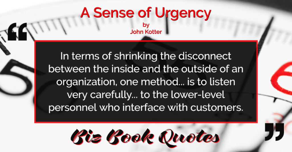 Quotes Quote: In terms of shrinking the disconnect between the inside and the outside of an organization, one method… is to listen very carefully… to the lower-level personnel who interface with customers.