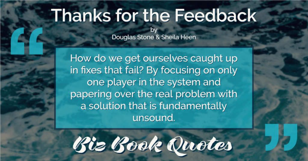 Quotes Quote: How do we get ourselves caught up in fixes that fail? By focusing on only one player in the system and papering over the real problem with a solution that is fundamentally unsound.