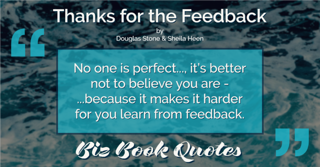Quotes Quote: No one is perfect…, it’s better not to believe you are – …because it makes it harder for you learn from feedback.