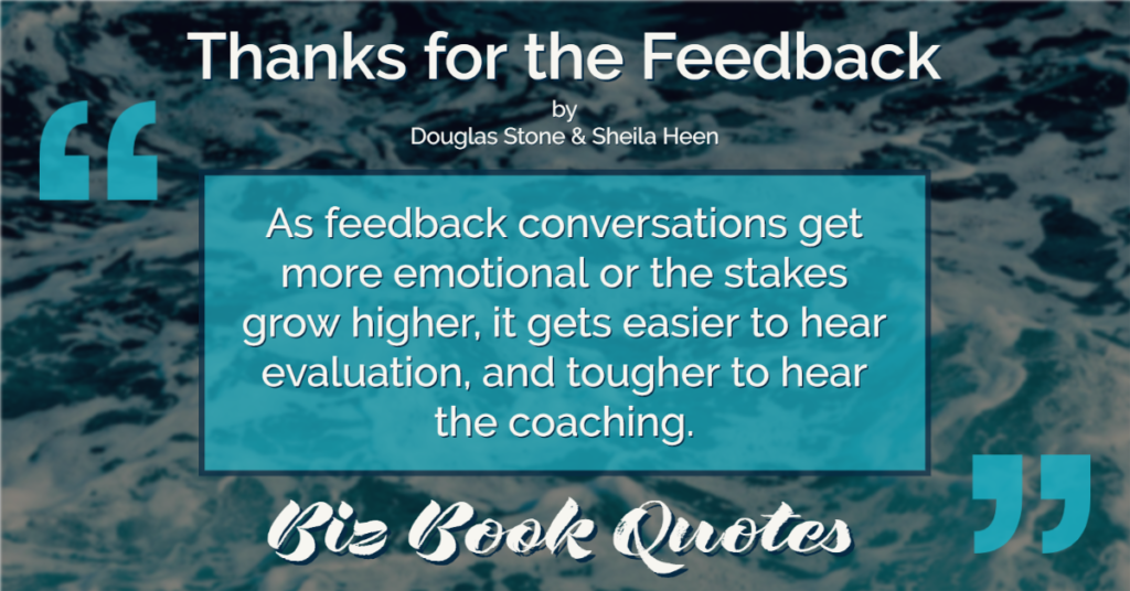Quotes Quote: As feedback conversations get more emotional or the stakes grow higher, it gets easier to hear evaluation, and tougher to hear the coaching.