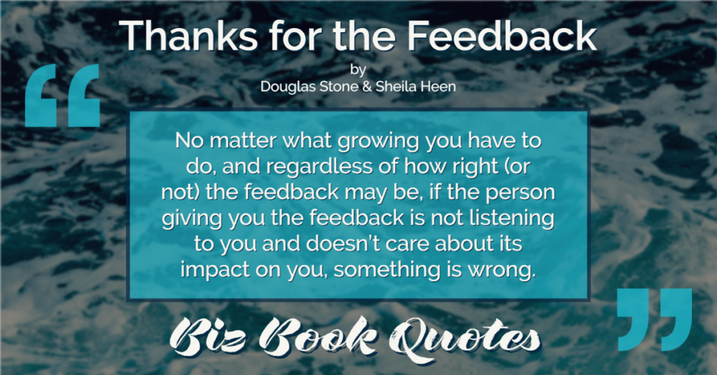 Quotes Quote: No matter what growing you have to do, and regardless of how right (or not) the feedback may be, if the person giving you the feedback is not listening to you and doesn’t care about its impact on you, something is wrong.