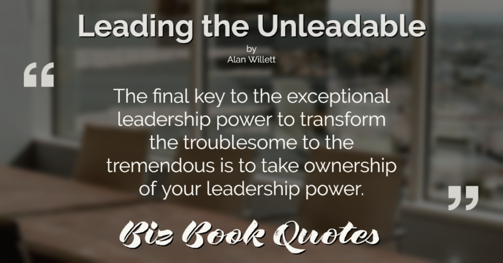 Quotes Quote: The final key to the exceptional leadership power to transform the troublesome to the tremendous is to take ownership of your leadership power.