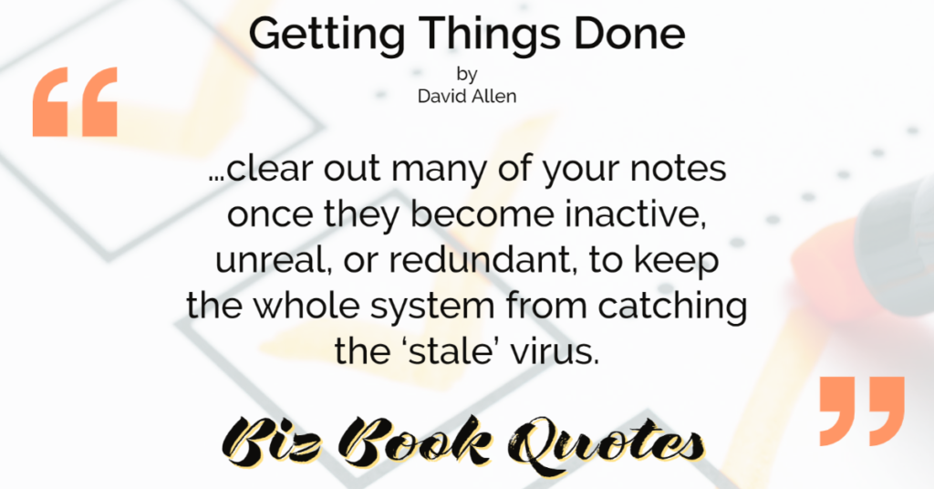 Quotes Quote: …clear out many of your notes once they become inactive, unreal, or redundant, to keep the whole system from catching the ‘stale’ virus.