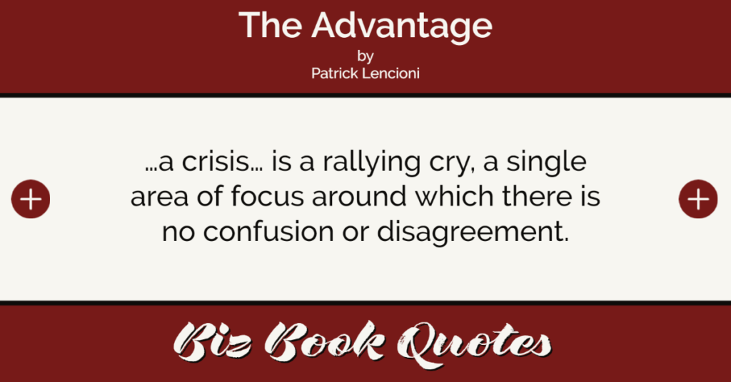 Quotes Quote: …a crisis… is a rallying cry, a single area of focus around which there is no confusion or disagreement.