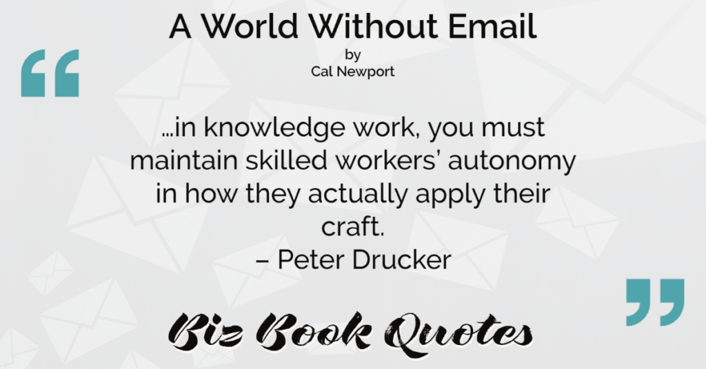 Quotes Quote: …in knowledge work, you must maintain skilled workers’ autonomy in how they actually apply their craft. – Peter Drucker