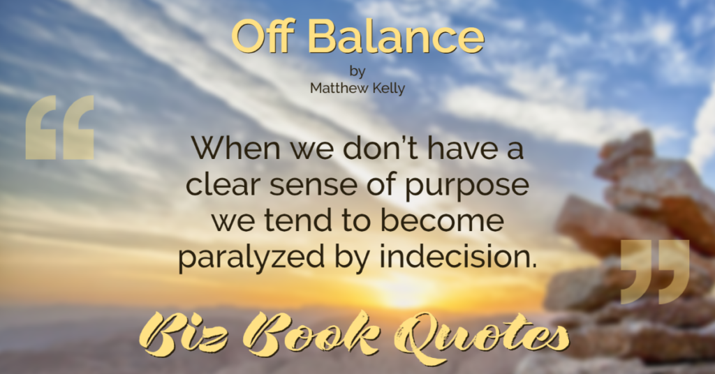 When we don’t have a clear sense of purpose we tend to become paralyzed by indecision.