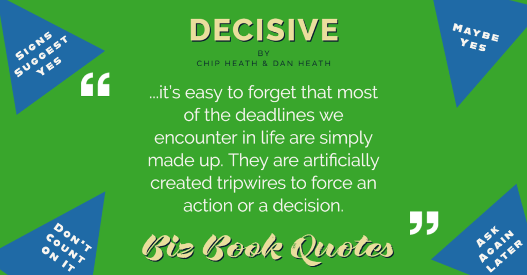 Quotes Quote: …it’s easy to forget that most of the deadlines we encounter in life are simply made up. They are artificially created tripwires to force an action or a decision.