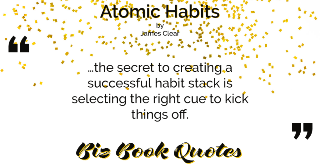 Quotes Quote: …the secret to creating a successful habit stack is selecting the right cue to kick things off.
