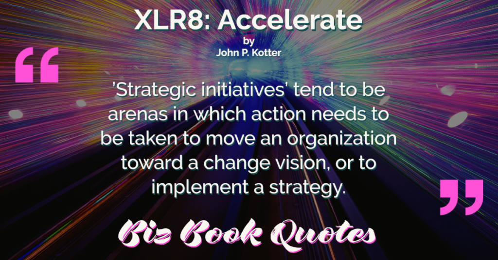 Quotes Quote: ’Strategic initiatives’ tend to be arenas in which action needs to be taken to move an organization toward a change vision, or to implement a strategy.