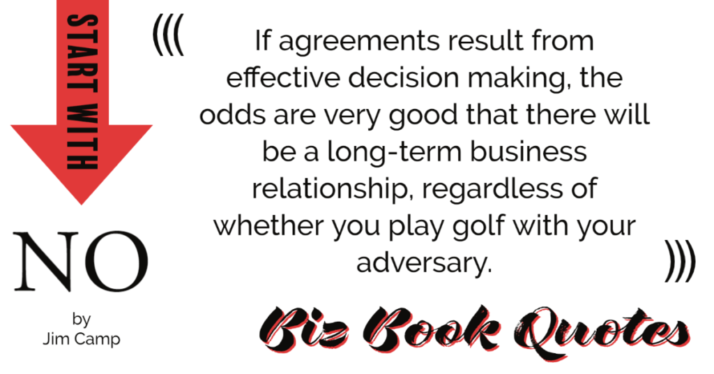 Quotes Quote: If agreements result from effective decision making, the odds are very good that there will be a long-term business relationship, regardless of whether you play golf with your adversary.