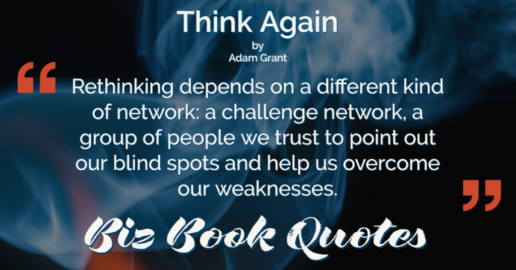 Quotes Quote: Rethinking depends on a different kind of network: a challenge network, a group of people we trust to point out our blind spots and help us overcome our weaknesses.