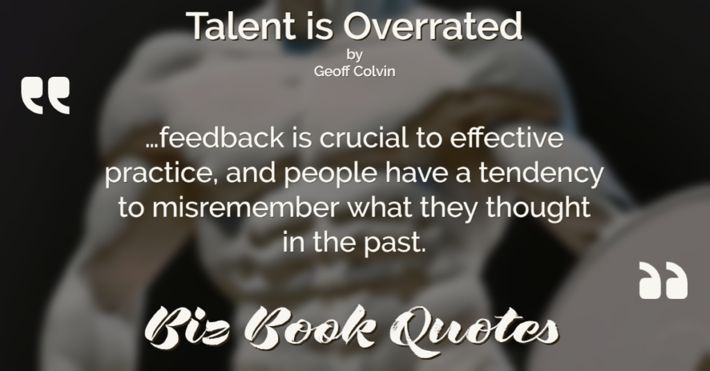 Quotes Quote: …feedback is crucial to effective practice, and people have a tendency to misremember what they thought in the past.