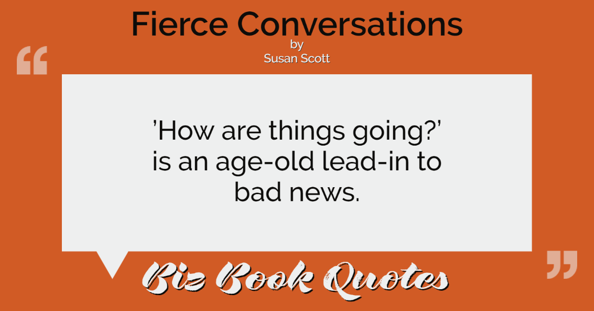 ’How are things going?’ is an age-old lead-in to bad news.