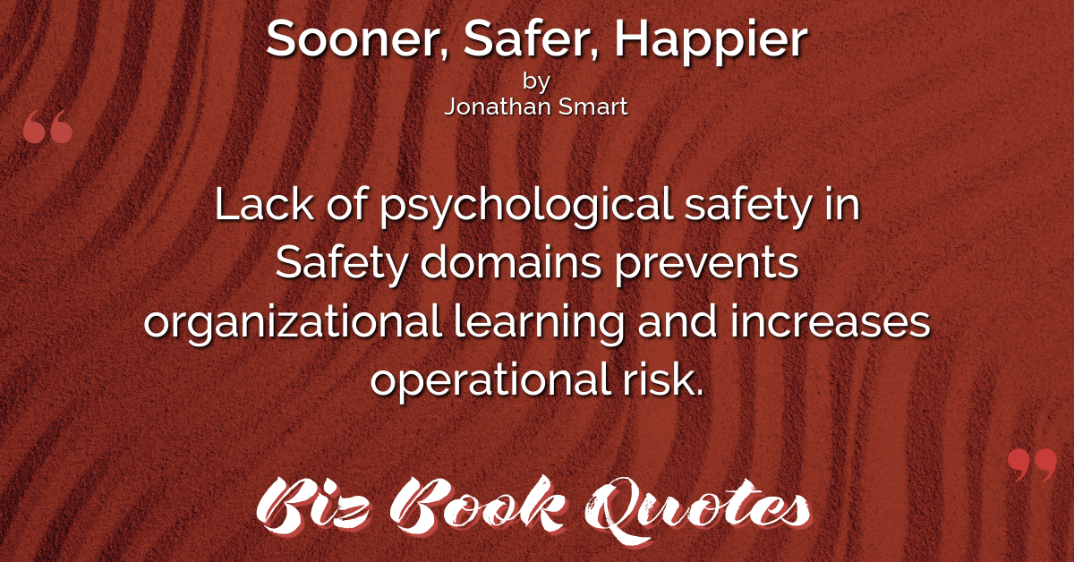 Lack of psychological safety in Safety domains prevents organizational learning and increases operational risk.