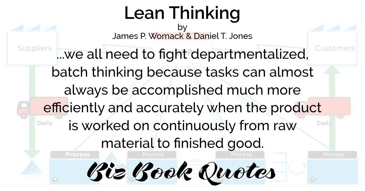 …we all need to fight departmentalized, batch thinking because tasks can almost always be accomplished much more efficiently and accurately when the product is worked on continuously from raw material to finished good.