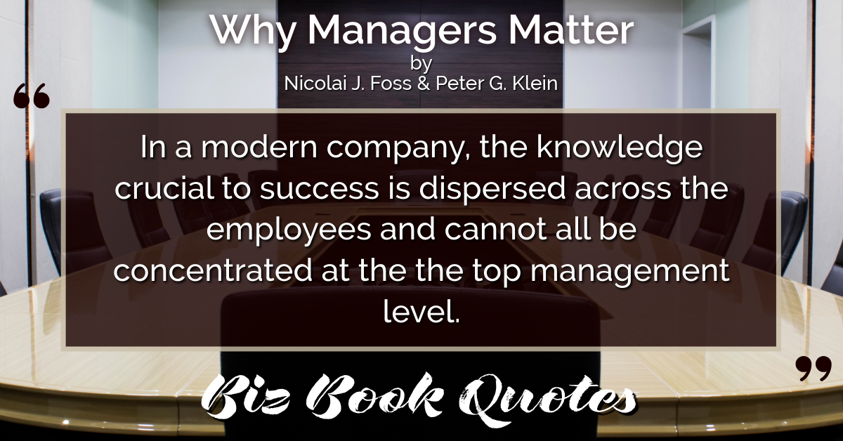 In a modern company, the knowledge crucial to success is dispersed across the employees and cannot all be concentrated at the the top management level.